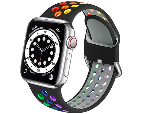 如果您喜歡時髦的印花配飾,那麼這就是您應該選擇的一款。在亞馬遜上沖浪時,這支運動樂隊獨特的彩虹印花上的短語引起了我的注意,我就買了它。 Vieeki 提供兩種尺寸,一種適用於 38-41 毫米錶殼,另一種適用於 42-45 毫米錶殼。因此,您無需擔心配件問題。