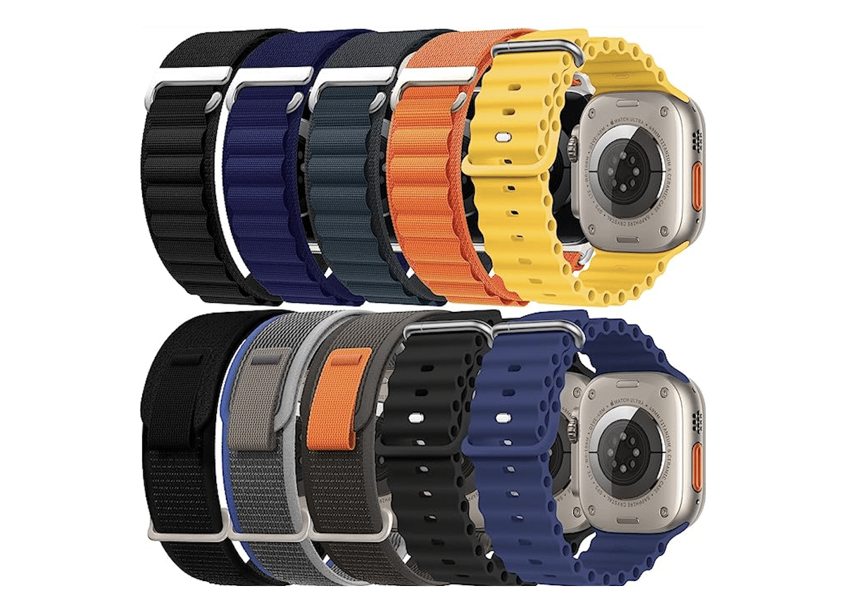 ONFNZ 提供一包 10 條 Trail Loop 和 Ocean Loop Apple Watch Ultra 2 錶帶。它們專為戶外探險和健身課程以及日常穿著而設計。