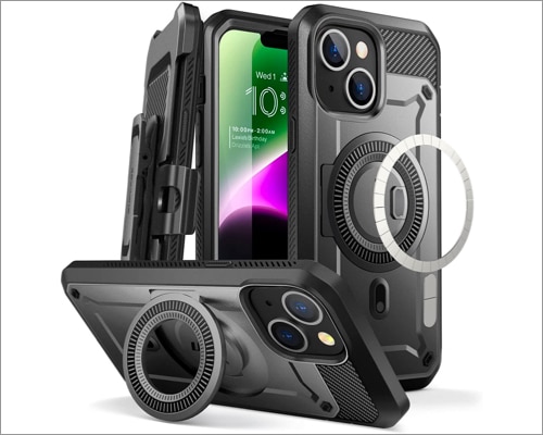 如果您喜歡看電影,背面的支架會很有用。另外,我喜歡可旋轉的皮帶夾。該保護殼與大多數其他無線充電器兼容,包括 MagSafe。此外,它還與 MagSafe 車載支架集成,可以通過導航提高駕駛便利性。但主要缺點是它會增加 iPhone 的重量和體積。