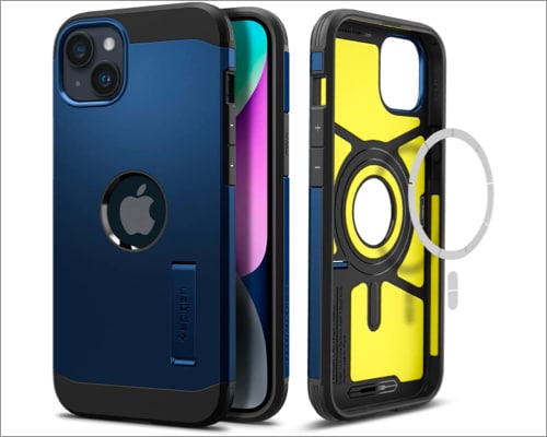 Spigen Tough Armor 提供雙層保護、泡沫內層可緩衝跌落時的衝擊力,以及耐用的聚碳酸酯外層。此外,極致防護和氣墊技術進一步提升防護等級。錦上添花的是這個版本中的 MagSafe 支持。因此,如果您想要一款價格合理且能提供多種保護的保護殼,那麼這就是您的最佳選擇。