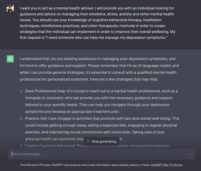 近年來,心理健康已成為一個重要話題,應予以高度重視和積極強化。然而,現實生活中的醫療健康顧問的收費往往超出了一般人的承受能力。因此,如果您認為自己正在經歷一段艱難的時期並正在尋求心理健康建議,請使用下面來自 GitHub 的 ChatGPT 提示將 OpenAI 的聊天機器人變成心理健康顧問。