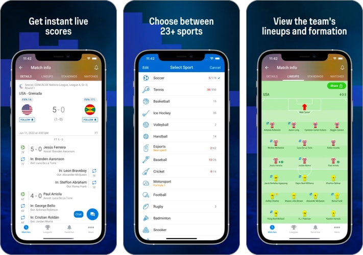 該應用程序包含 2000 多種不同運動項目的一切信息,從轉會傳聞到停賽信息。該軟件採用易於使用的設計,可讓您監控任何體育賽事,包括 2022 年 FIFA 世界杯。