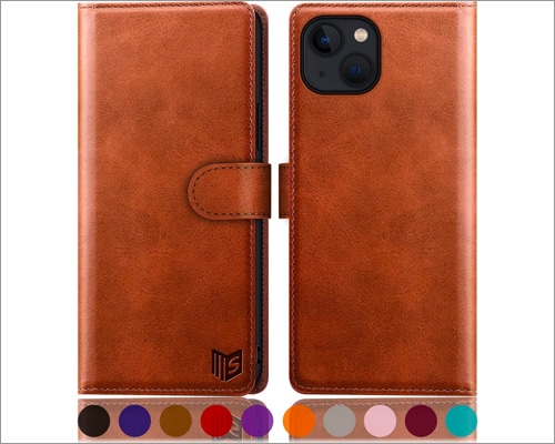 SUANPOT 錢包式保護套採用 PU 皮革製成。它還具有磁性閉合帶,可牢固固定兩側。對於那些不知道的人來說,PU 皮革產品不是純素皮革,因為它們是由二層皮製成,並進一步塗有聚氨酯,因此如果您正在尋找純素皮套,它不是最佳選擇。