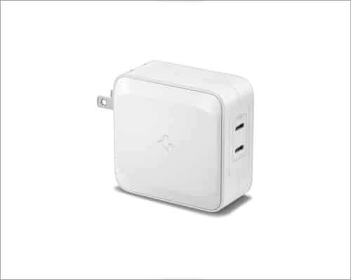 Spigen 100W GaN 充電器具有兩個 USB-C 端口,具有雙 45W 功率輸出。因此,如果您連接 MacBook Pro,它將在 2.5 小時內以 100W 輸出充滿電,並在 44 分鐘內從 0% 充到 50%。此外,獨特的自適應功率擴散技術可以智能地為每個連接的設備提供最佳功率。