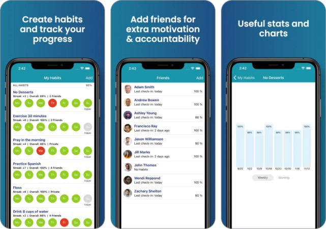 它允許您設定每日和每週的習慣目標並幫助您實現這些目標。實時警報讓您隨時了解目標。此外,你還可以用有趣的GIF與朋友交流,交換意見。