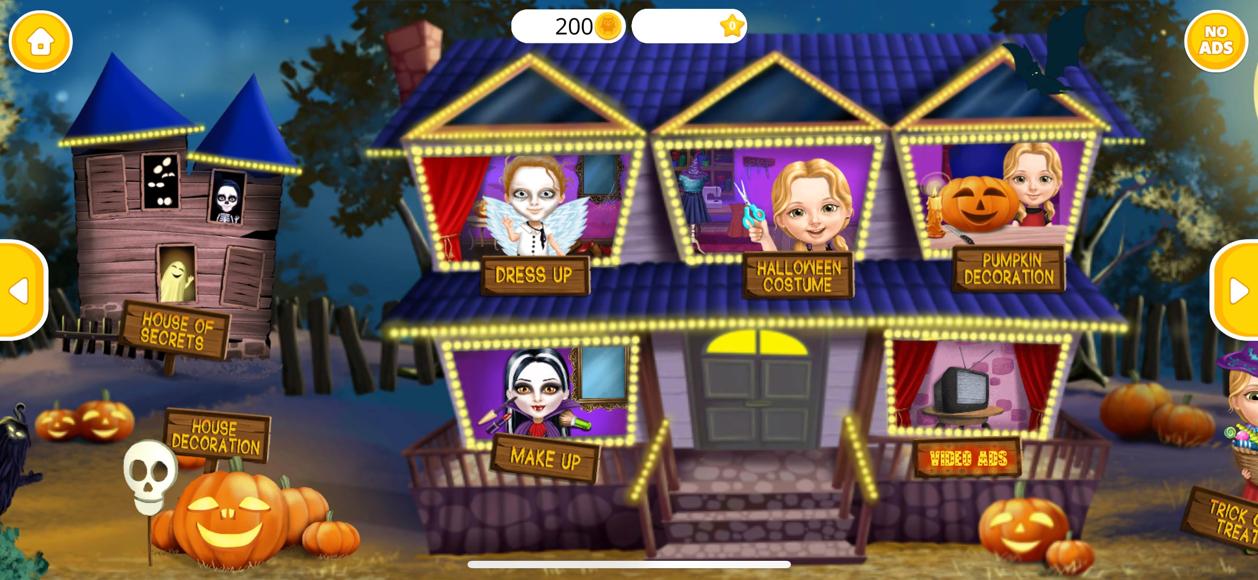 該遊戲允許您按照自己想要的方式雕刻南瓜並製作個性化的南瓜燈。這還不是全部 - 您還可以給虛擬角色化妝,並根據他們的萬聖節房屋主題來打扮他們。