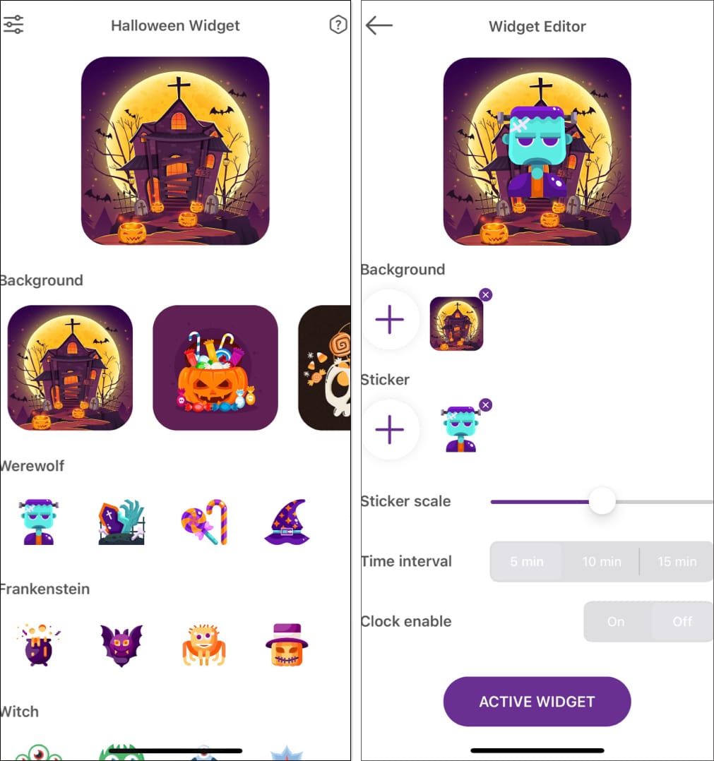 該應用程序具有成百上千個基於萬聖節的小部件,您可以將它們添加到您的 iPhone 和 iPad 上。您還可以創建自定義小部件以實現額外的個人風格,包括天氣和時鍾小部件的自定義。