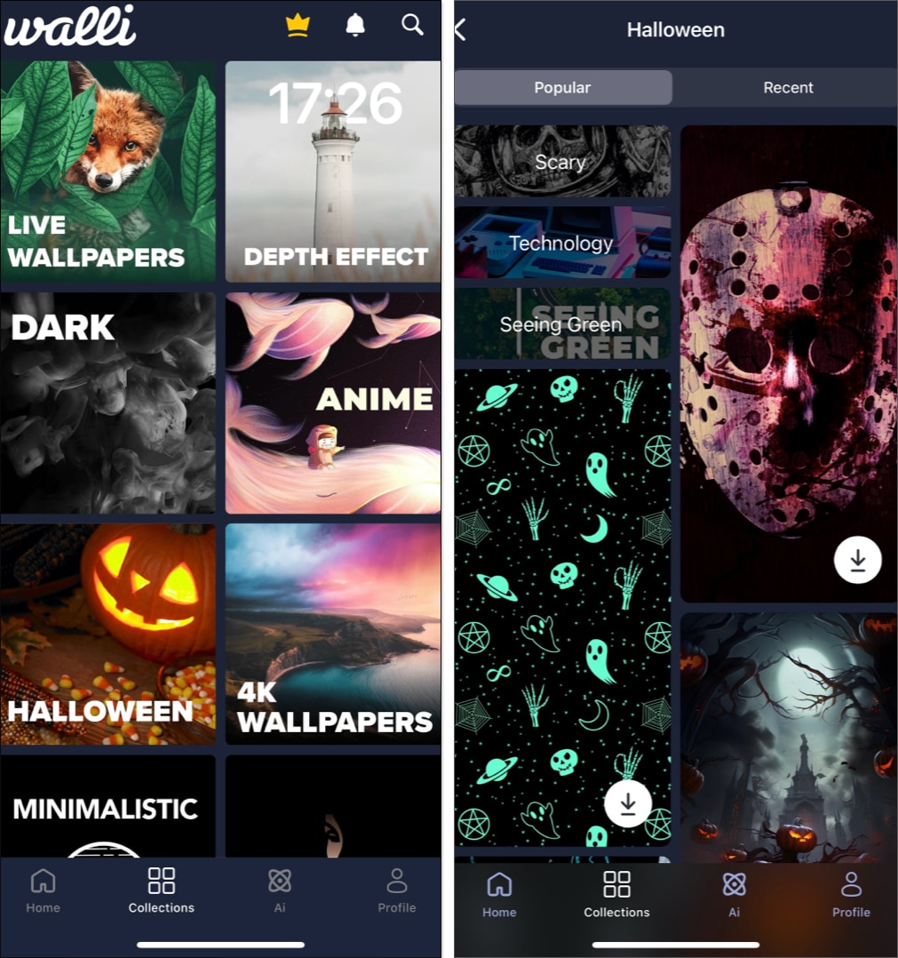 誰不喜歡美麗的 Super Retina XDR iPhone 顯示屏上精美、清晰的 4K 壁紙?此外,雖然我嘗試過提供壁紙作為補充的應用程序,但我沒有發現它們的種類太多或質量太高。 Walli 應用程序改變了這種情況,該應用程序擁有大量出色的高品質萬聖節壁紙。