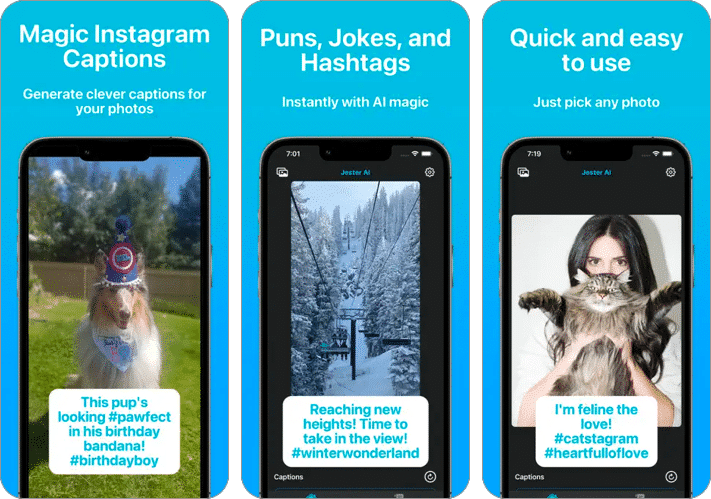 Jester AI 致力於使用人工智能為您的 Instagram 照片創建聰明、有趣且令人興奮的標題。 Jester AI 應用程序簡單且高度直觀的界面使其成為 Instagram 上最好的字幕應用程序之一。您只需選擇一張照片並轉到 Jester AI 應用程序即可。人工智能會分析照片並策劃四種不同的標題,以適合您提交的照片的氛圍。