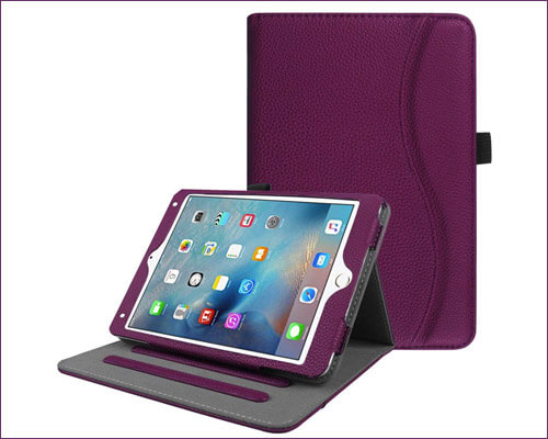 Fintie 在製作對開式保護殼方面已達到完美。從這款iPad mini智能保護殼看來,它支持自動睡眠/喚醒功能。這款帶口袋的保護套可讓您將設備調整到多個角度。不要錯過文件卡袋,它可以存放您的名片、銀行卡、貨幣等。