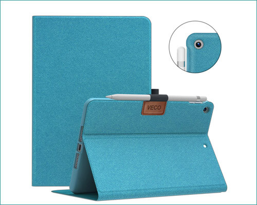Veco 不遺餘力地打動 iPad mini 用戶——消費者和專業用戶。這款對開翻蓋保護套取自 Veco 的牛仔布系列,配有鉛筆架。如果您使用的是第一代 Apple Pencil,您可以輕鬆將其連接到這款保護套上。
