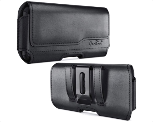 如果您覺得將 iPhone 放在口袋裡攜帶不舒服,這款皮帶夾保護殼是您的理想之選。 DeBin 高級皮套就像一個可以掛在腰帶上的小包。蓋子由優質皮革製成,內部有柔軟的襯裡,以避免刮擦。因此,即使戴著保護殼,您也可以放心攜帶 iPhone 15。