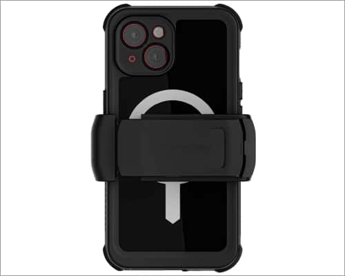 因此,您的新手機不會掉落或出現不必要的划痕。最好的部分是在裝上保護殼的情況下使用 MagSafe 充電器和配件。此外,該品牌還加固了可旋轉皮帶夾,以吸收突發衝擊。此外,皮套的安全頂部閂鎖設計允許以垂直或水平姿勢快速取用。