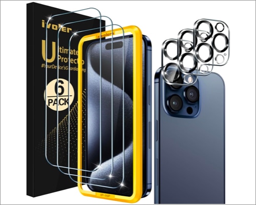 如果您的預算較低,但想要為您的 iPhone 15 Pro Max 提供優質的屏幕保護膜,iVoler 的鋼化玻璃可能是一個完美的選擇。它具有三個屏幕保護膜和相機鏡頭,價格低廉。