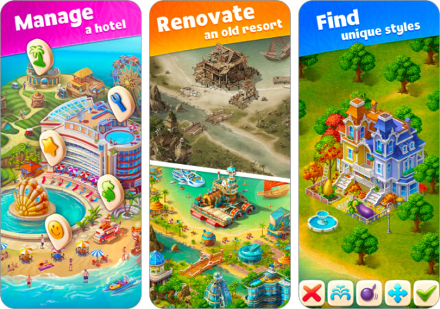 從 300 多種建築設計中進行選擇,並為島上的人們添加度假村、餐廳、景點和遊樂設施。每天都會有小任務來挑戰玩家並收集獎勵。