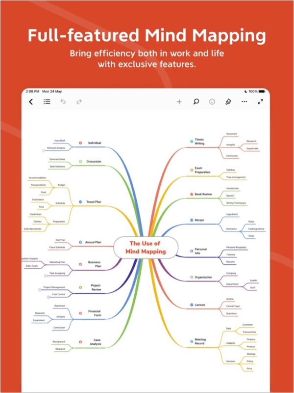 此外,它提供的功能非常實惠。它使用起來超級簡單,有助於消除乾擾,讓您的思緒在屏幕上流動。雲備份讓您可以隨時隨地輕鬆訪問地圖。