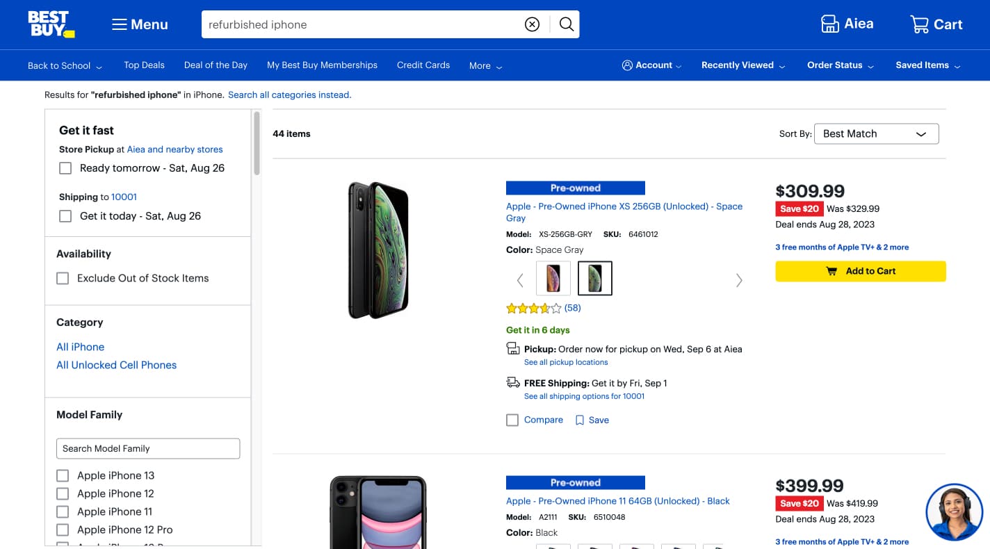 您還可以選擇免費送貨或快速取貨以增加便利。它還為最近購買的產品提供保修(有限 90 天),這使得百思買成為購買翻新 iPhone 的最佳地點之一。