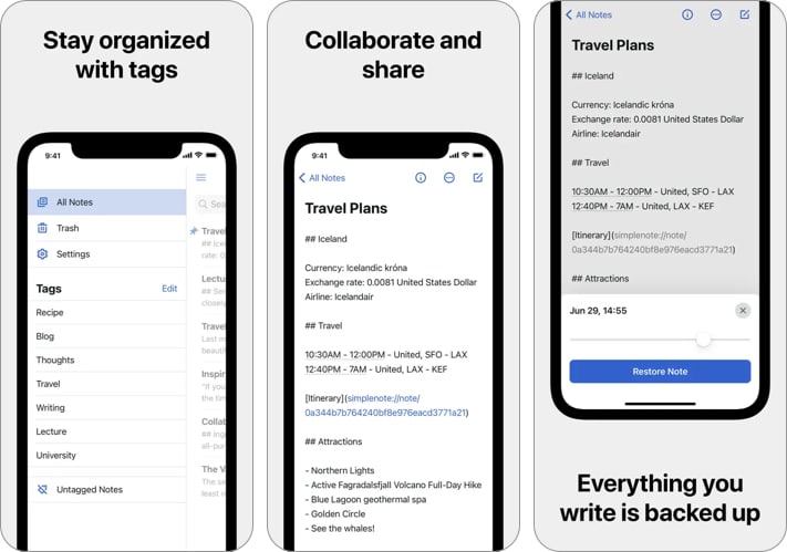 它允許您固定頁面以立即找到它們。您可以與同事或朋友在共享筆記本中工作。使用 Touch ID 確保您的帳戶安全。該應用程序支持某些語言,例如英語、阿拉伯語、加泰羅尼亞語、克羅地亞語、捷克語、丹麥語、荷蘭語、芬蘭語、法語、德語、希臘語、希伯來語和印地語。