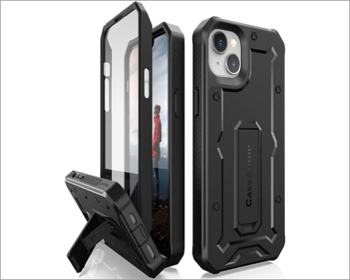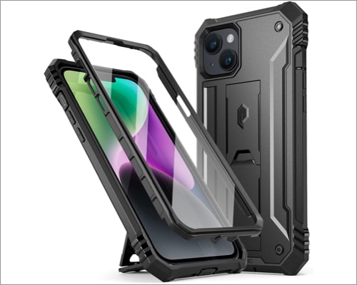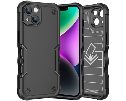 如果您打算更加嚴格,那麼詩意革命案例是正確的選擇。它配備 20 英尺軍用級保護,從各個角度保護您的 iPhone。外殼背面有一個支架,正面有一個屏幕保護膜。