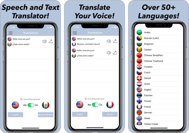 您可以用 100 多種語言進行書面對話。根據您的需要,您將選擇用男聲或女聲翻譯文本。在iPad上,您可以一邊使用其他應用程序一邊進行口譯。