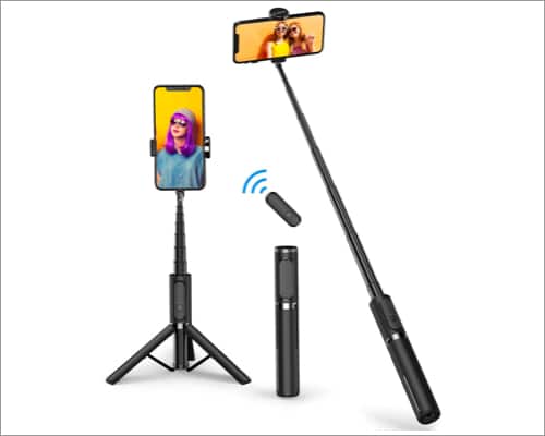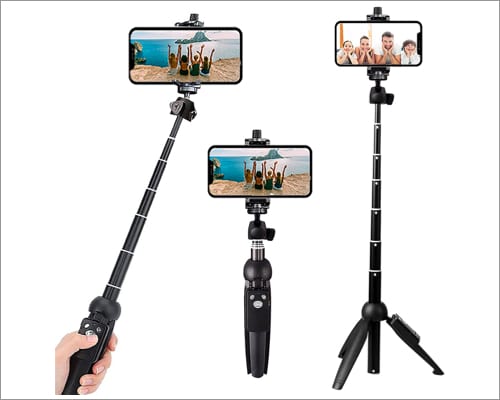 如果您正在尋找最適合 iPhone 的自拍杆之一,那就不用再猶豫了。自拍杆可延長至 40 英寸,由鋁合金製成,提供極致的耐用性。您還可以在需要時延長棍子的腿以形成三腳架。