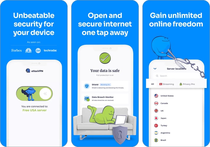 - Atlas VPN – 適用於 iPhone 的功能豐富的 VPN