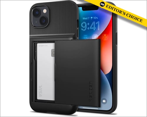 如果您不想要笨重的保護殼,並且需要為您的 iPhone 14 Plus 或 14 Pro Max 提供最佳保護,您可以考慮 Spigen 的 Slim Armor 錢包式保護殼。它具有雙層和氣墊技術,可保護您的 iPhone 免受意外跌落的影響。它配有減震 TPU 內部和聚碳酸酯外部。