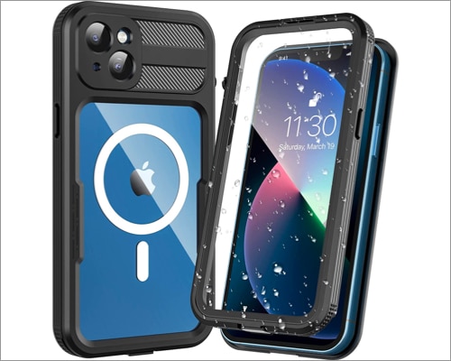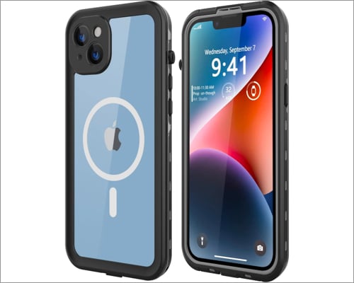 如果您去游泳或進行其他水上活動,這款手機殼非常適合您的 iPhone 14 Plus 或 14 Pro Max。正面有 6H PET 屏幕保護膜,背面有堅韌的 TPU 和聚碳酸酯外殼。此外,它還支持 MagSafe 充電和配件以及 Qi 無線充電。