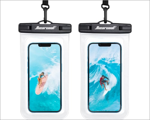 如果您不需要單獨的外殼,Hiearcool 通用防水解決方案是最佳選擇。這是一個防水袋,可將您的 iPhone 裝在裡面。當您想在水下拍攝照片或視頻時這是最好的選擇。這款 IPX8 級包可容納最大 7 英寸的設備。因此,您可以將 iPhone 浸入該包中長達 100 英尺(或 30m)。