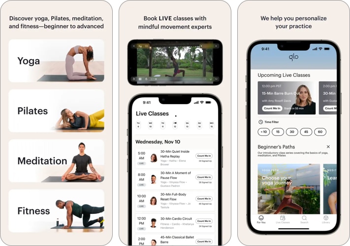 3. Glo Yoga 和冥想應用程序 – 參加現場課程