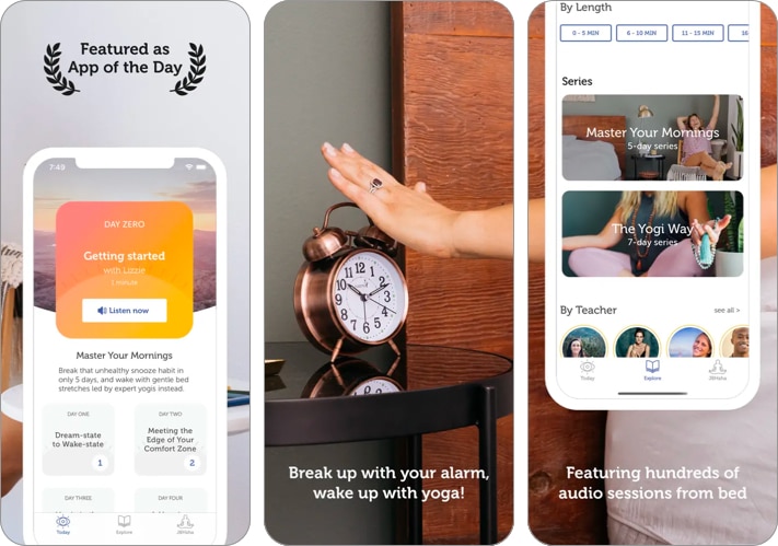 以良好的伸展運動開始新的一天怎麼樣?瑜伽喚醒應用程序提供獨特的早晨例程,讓您通過瑜伽正確醒來。通過舒緩的鬧鐘和叫醒時間設置您喜歡的音頻引導課程。此外,您還可以免費享受您的第一個早間系列。此外,還有午休和夜間的課程。