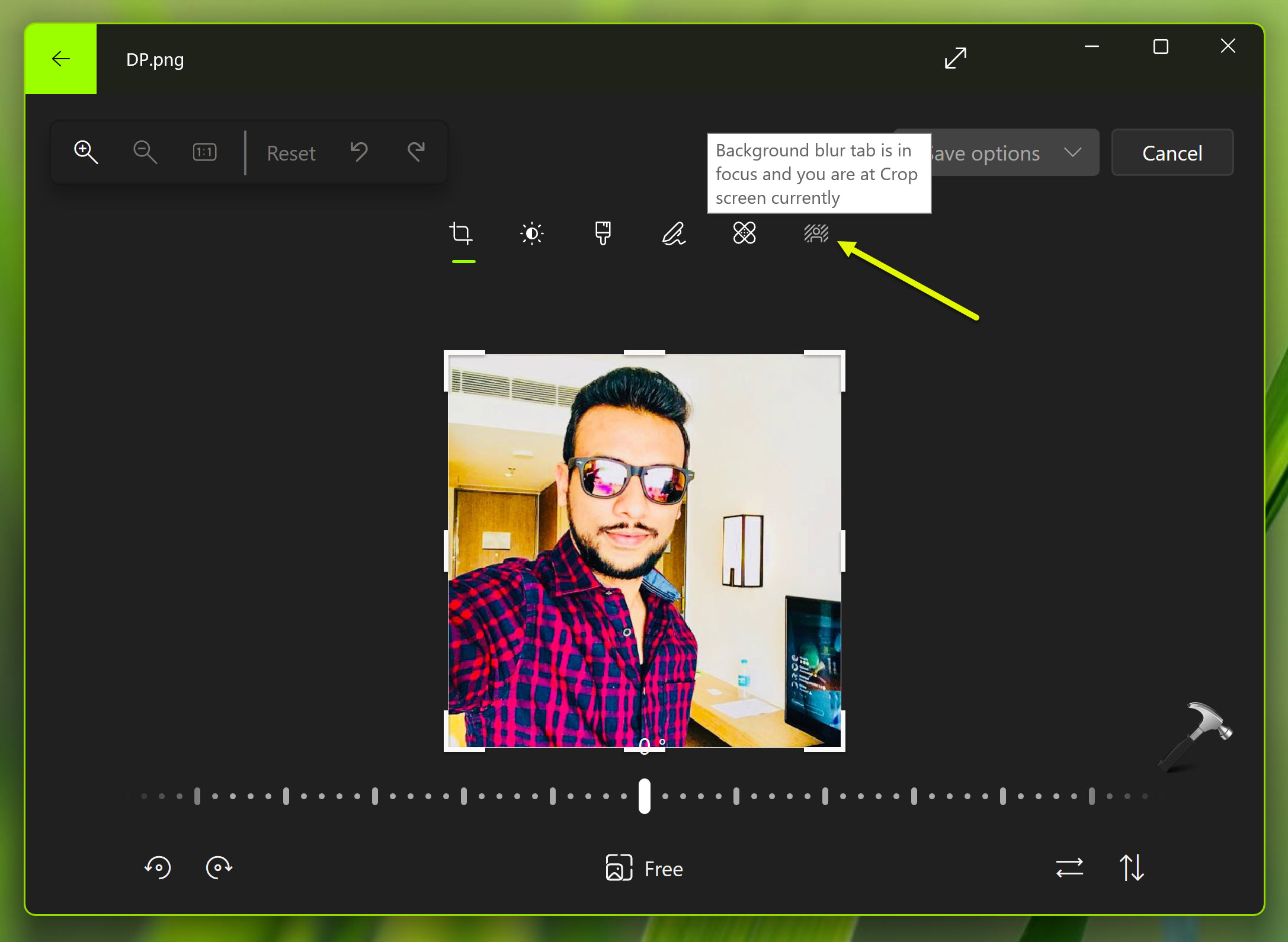 接下來,當編輯選項打開時,單擊背景模糊圖標,如下面的屏幕截圖所示。