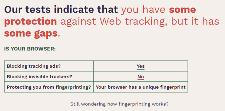 舉個例子,“我是獨一無二的嗎,”它準確地定位您的瀏覽器指紋,顯示您是否容易被識別。