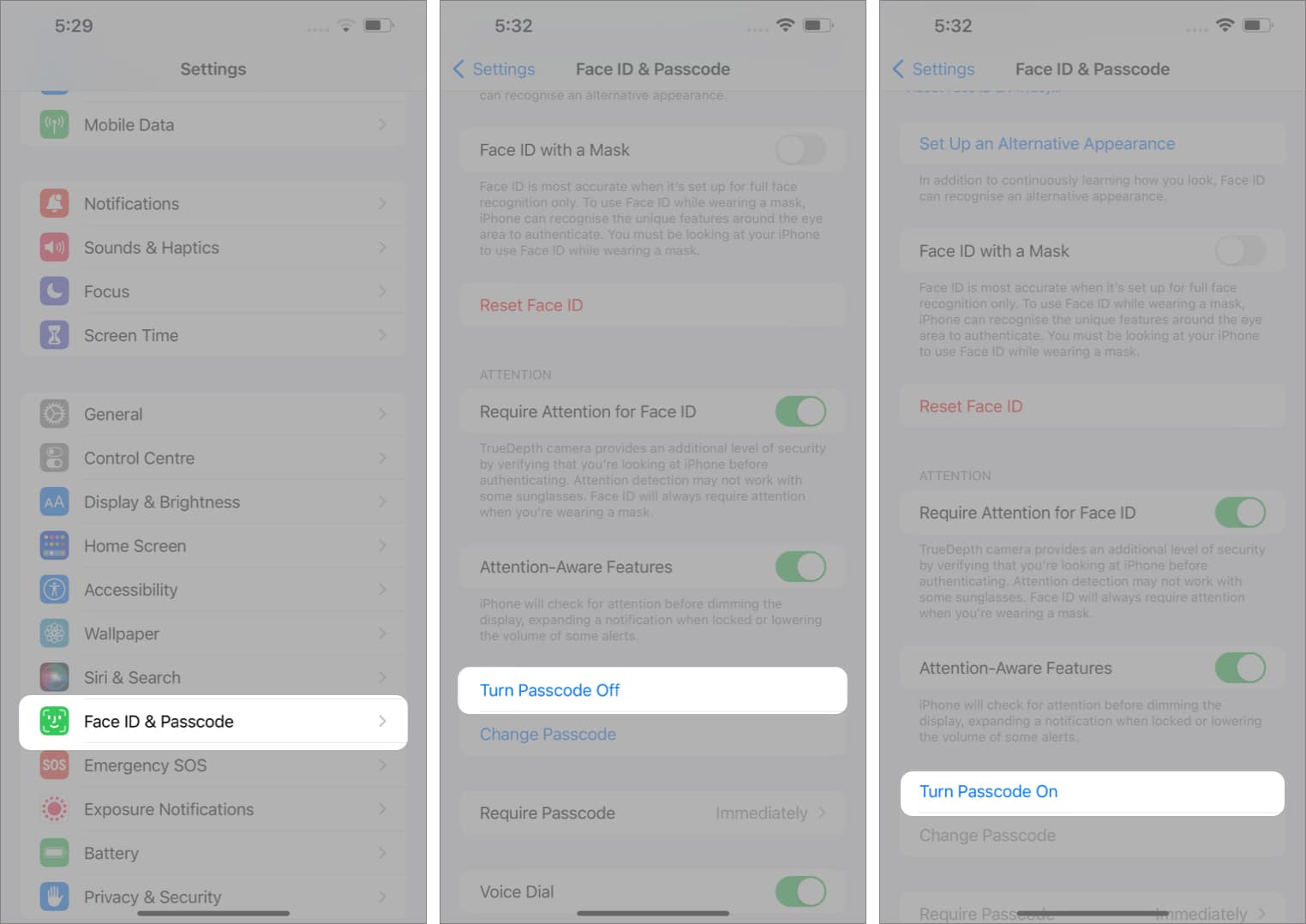禁用 iPhone 密碼然後再次啟用已幫助多名用戶解決了此問題。請按照以下步驟執行相同操作: