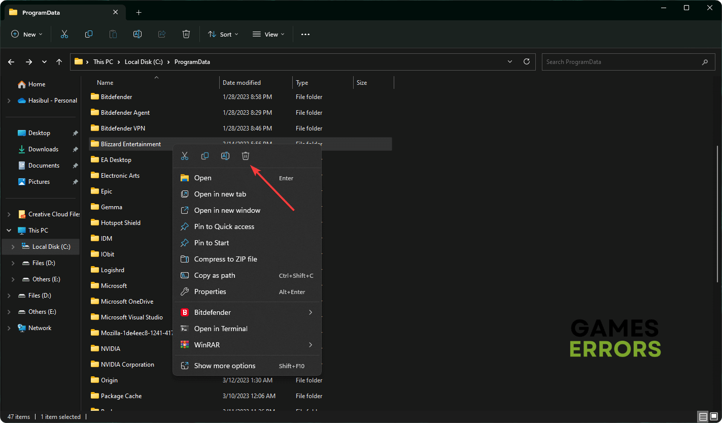 - 同樣,刪除內容暴雪娛樂文件夾也是。