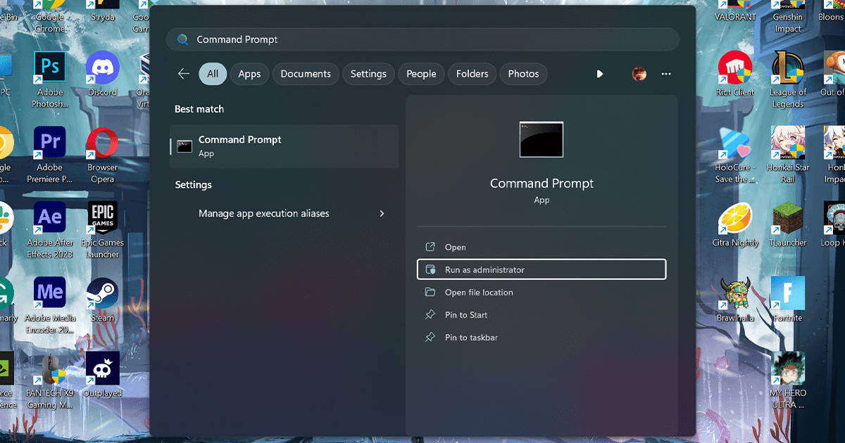 - 打開開始, 搜尋命令提示符,並選擇以管理員身份運行選項。