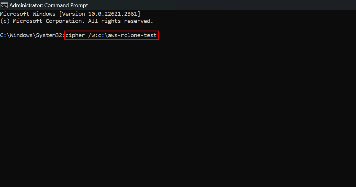cipher /w:DRIVE-LETTER:FOLDER-PATH
