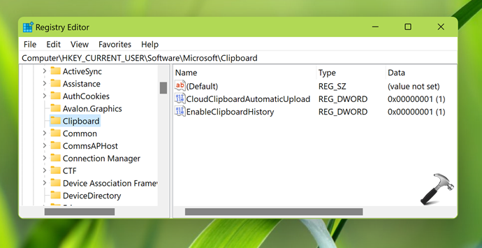 HKEY_CURRENT_USERSoftwareMicrosoftClipboard