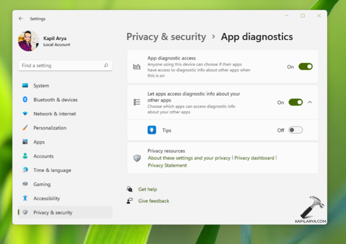 要在個人設備上的 Windows 11 中打開/關閉應用程序診斷訪問,請按照以下步驟操作。