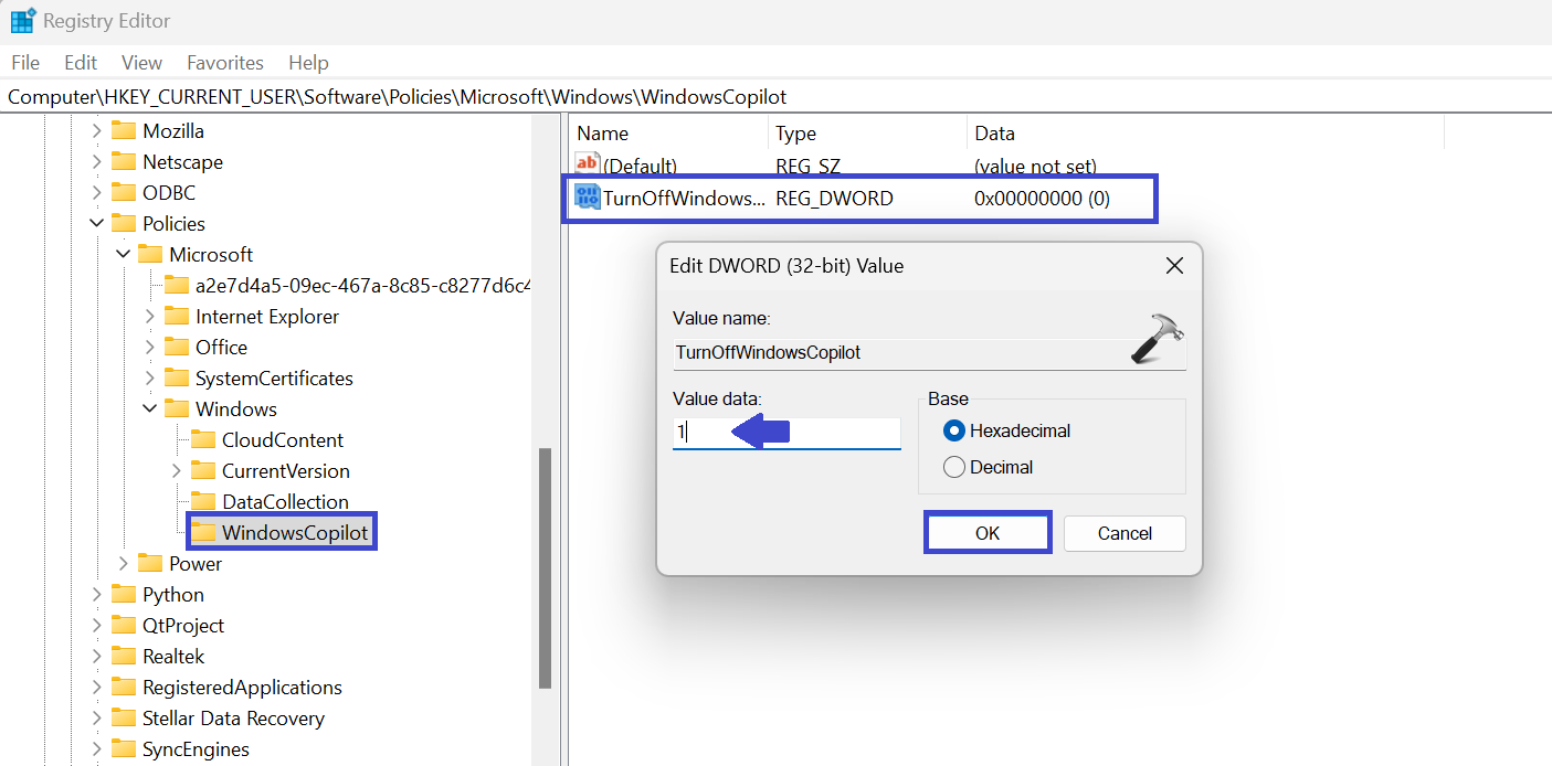 方法 2:使用註冊表編輯器在 Windows 11 上啟用/禁用 Copilot