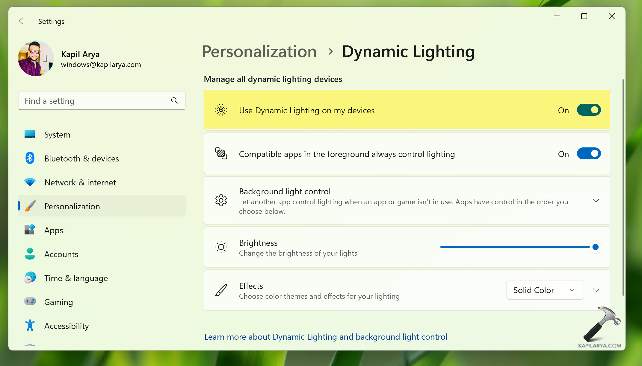 Windows 11 的最新預覽版具有動態照明功能。動態照明旨在在分散的生態系統中創造凝聚力。此功能將提供豐富的最終用戶體驗,讓 Windows 用戶不斷滿意。在本指南中,您將了解如何在 Windows 11 上啟用或禁用動態照明。