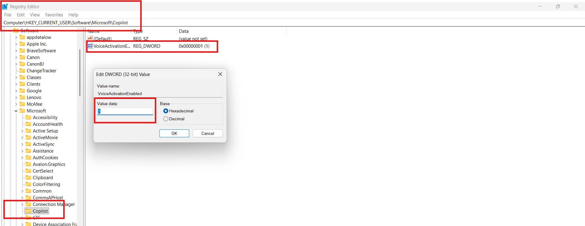HKEY_CURRENT_USERSoftwareMicrosoftCopilot/VoiceActivation