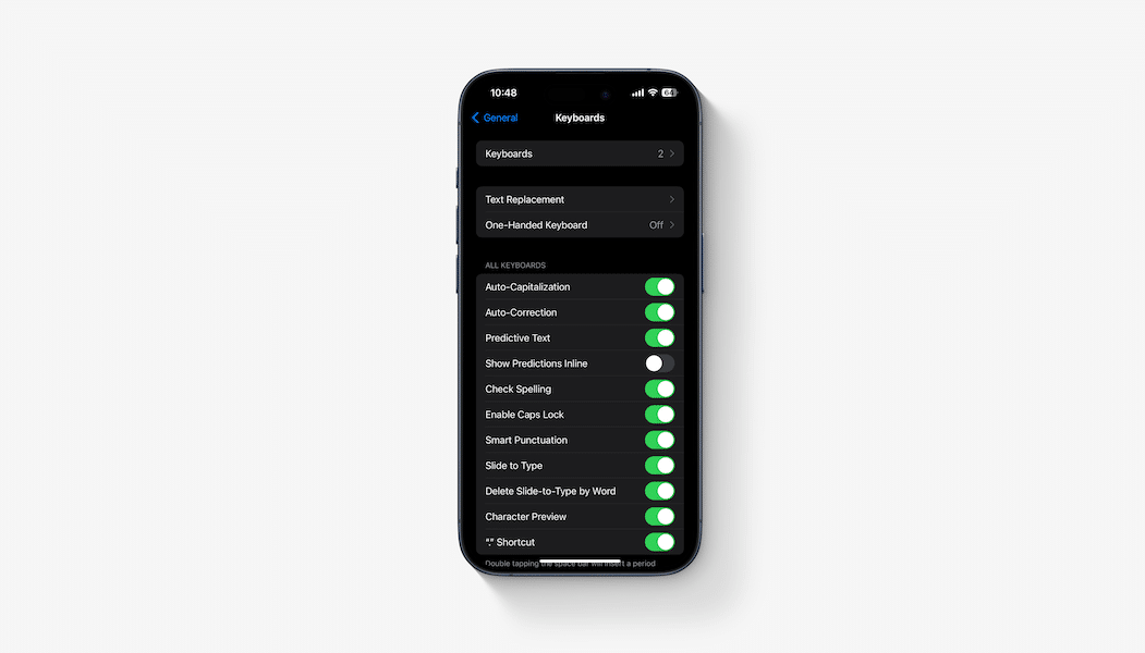 - 鍵盤設置添加了新的“顯示在線預測”切換打開/關閉預測文本。設置應用程序>常規>鍵盤>在線顯示預測。