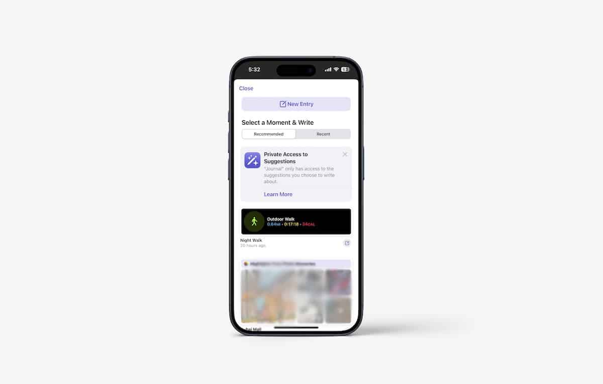 - 日記應用程序添加了推薦部分建議新的寫作主題。新部分還具有“最近”選項卡,顯示特定日期的日記條目。