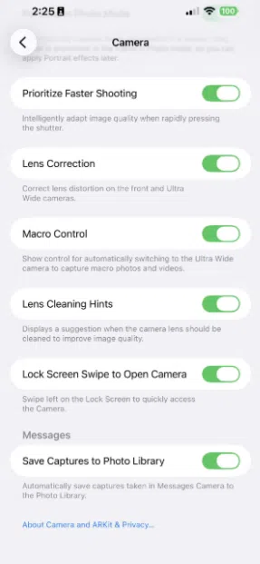 iPhone 用戶現在第一次可以禁用從鎖定屏幕打開相機應用程序的向左滑動手勢。新選項可以在“設置”>“相機”>“鎖定屏幕滑動啟動”中找到。