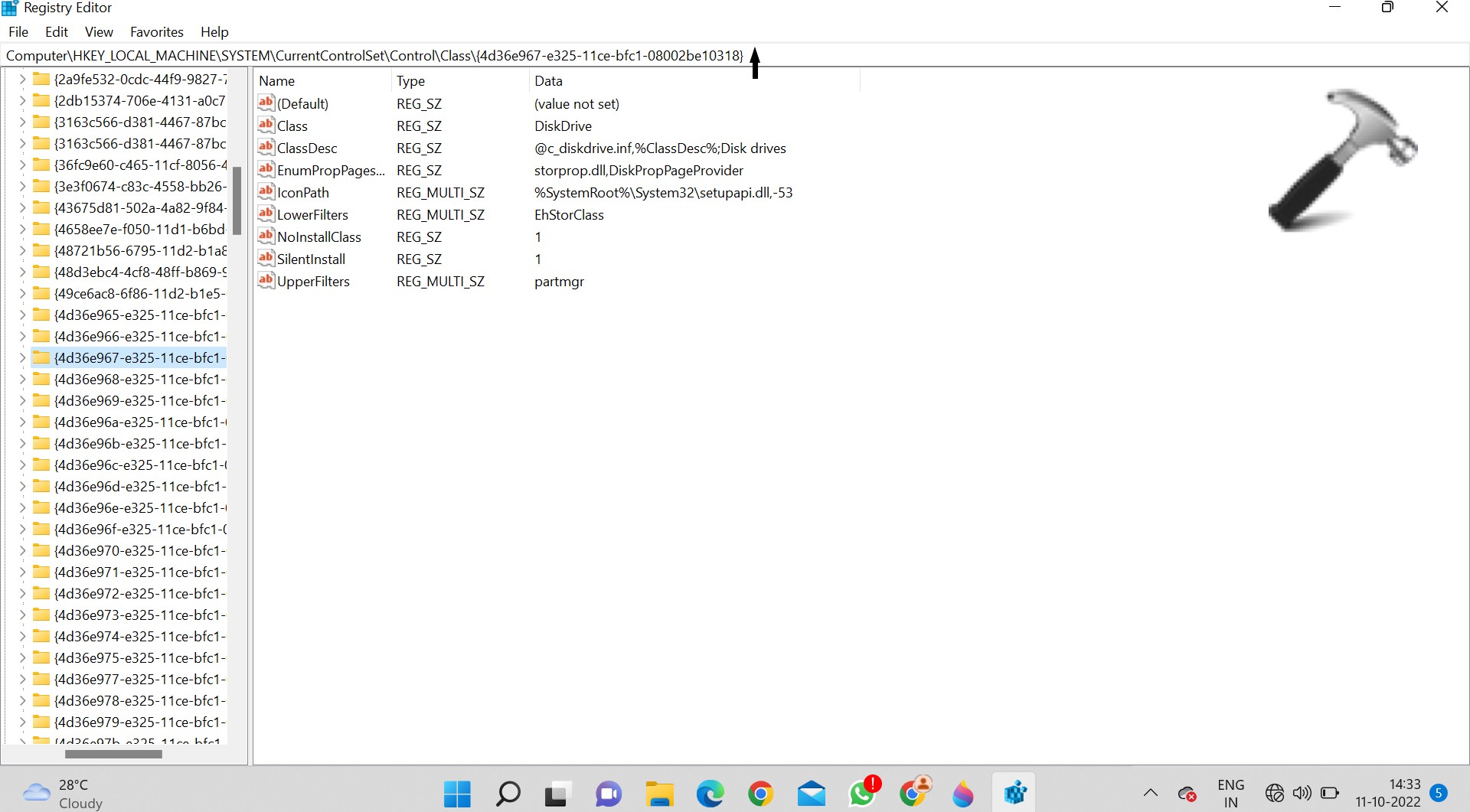 對於此方法,您必須知道正確的類 GUID,然後刪除有問題設備的註冊表篩選器鍵。