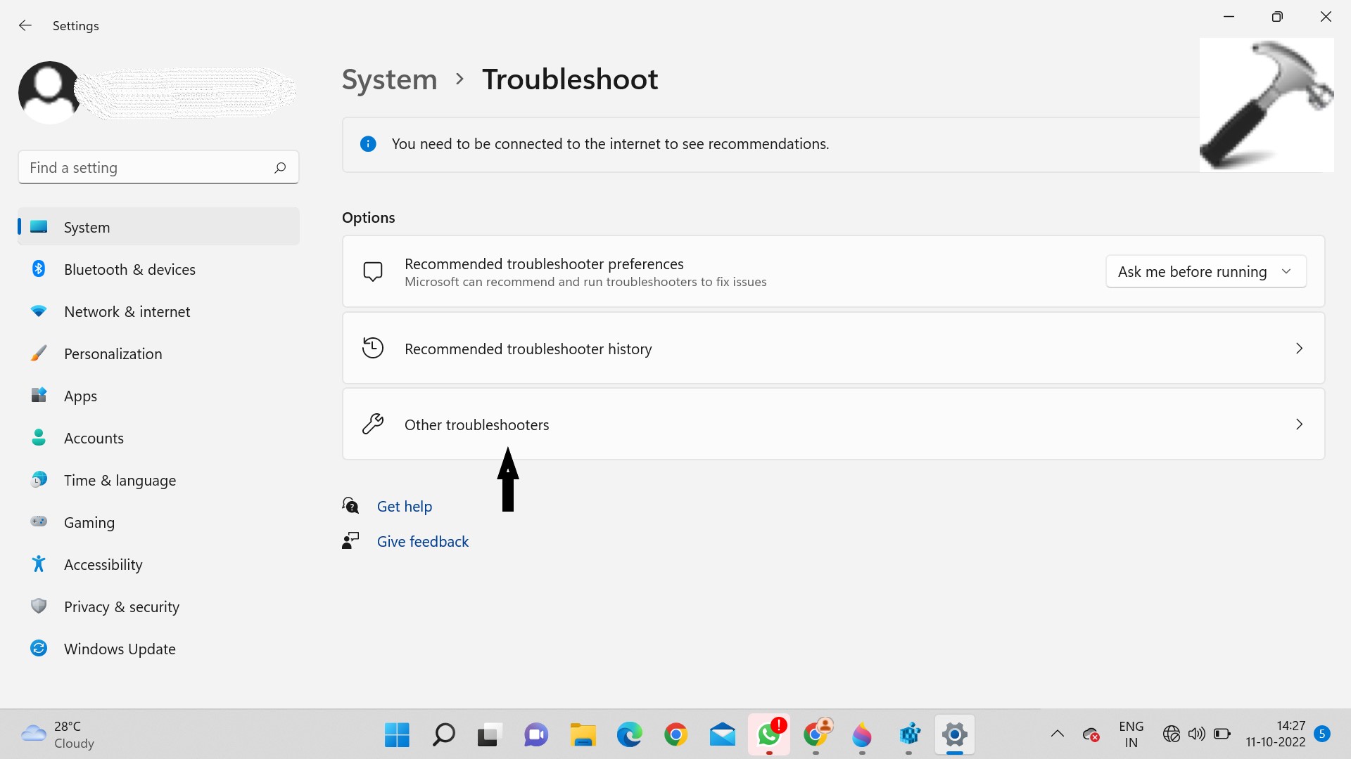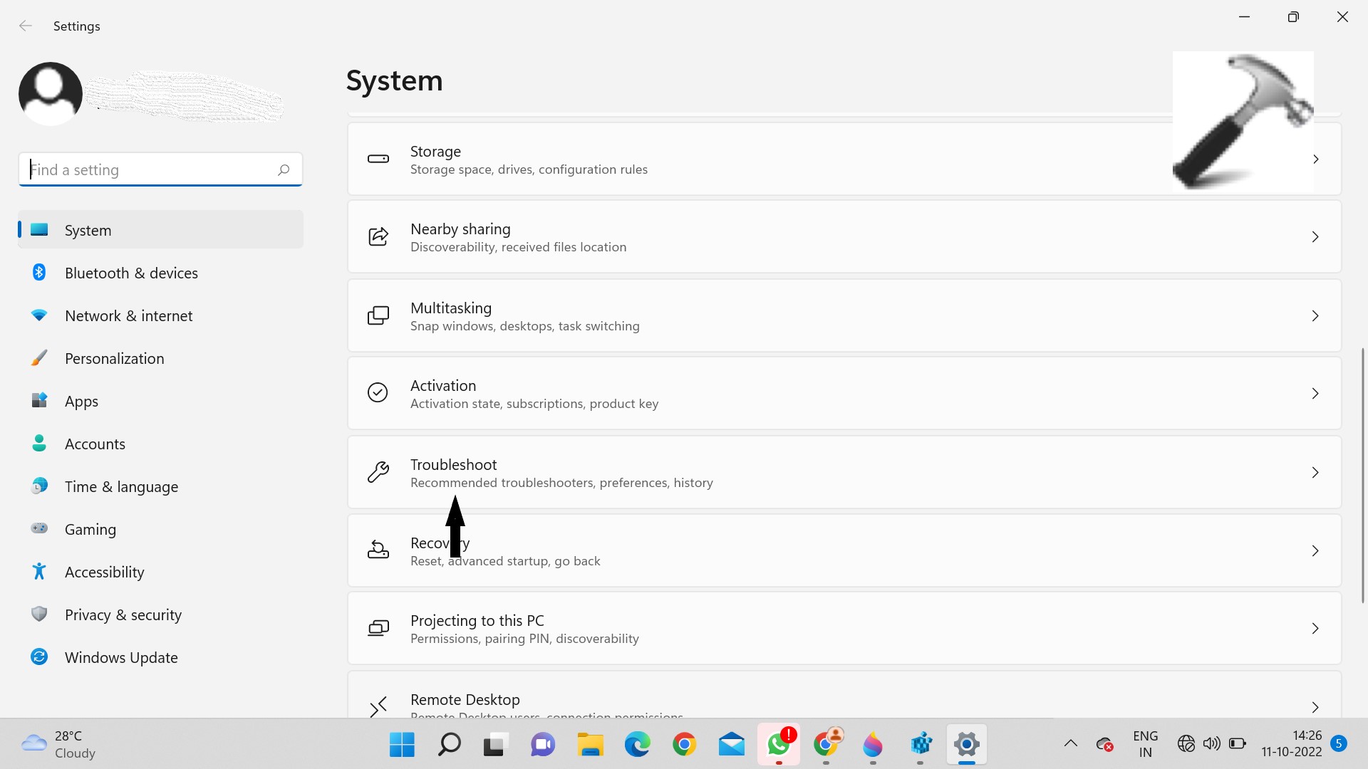 2. 選擇系統從右側窗格中,然後選擇故障排除從左邊。