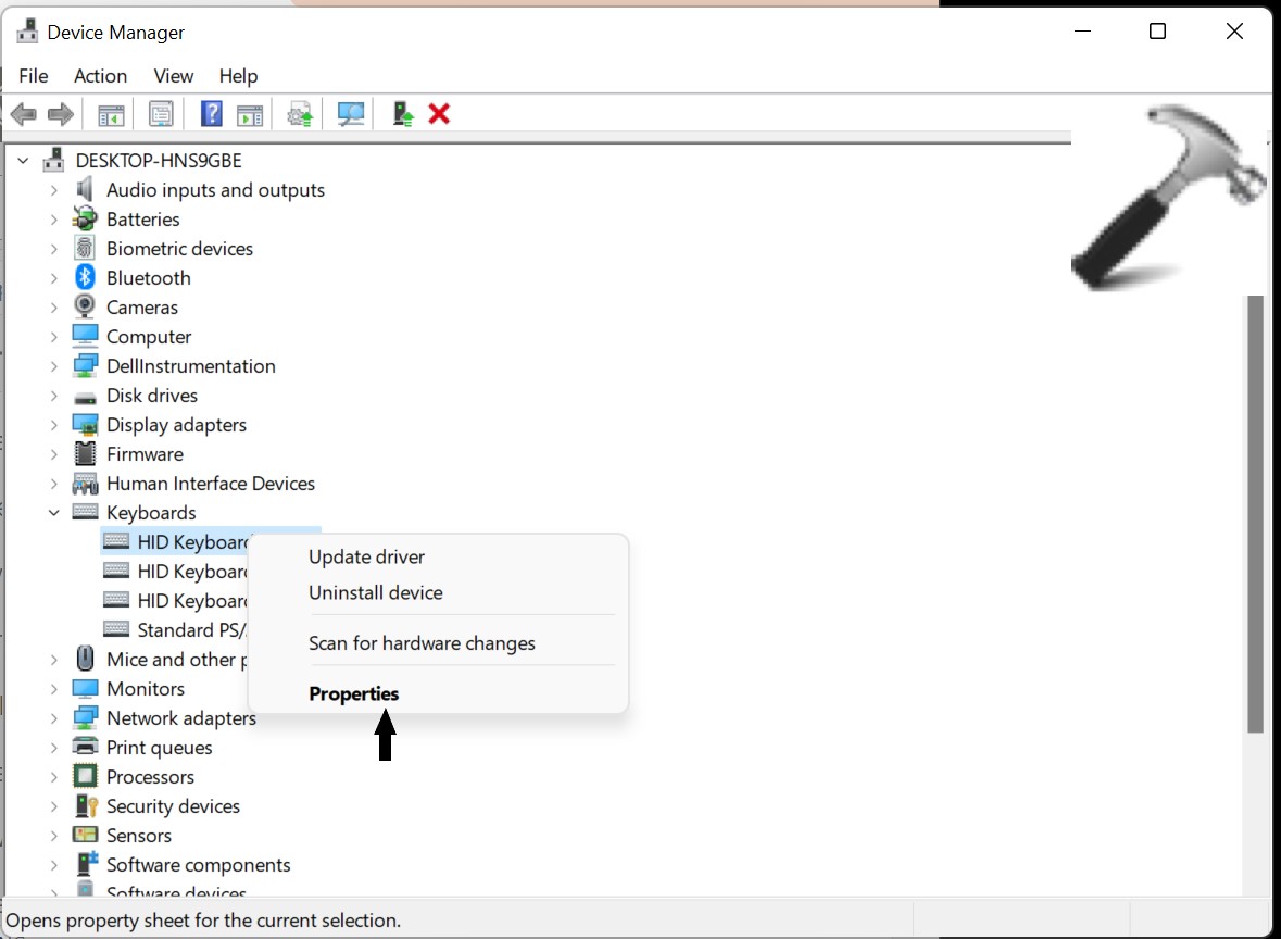 4. 右鍵單擊設備驅動程序並選擇特性。