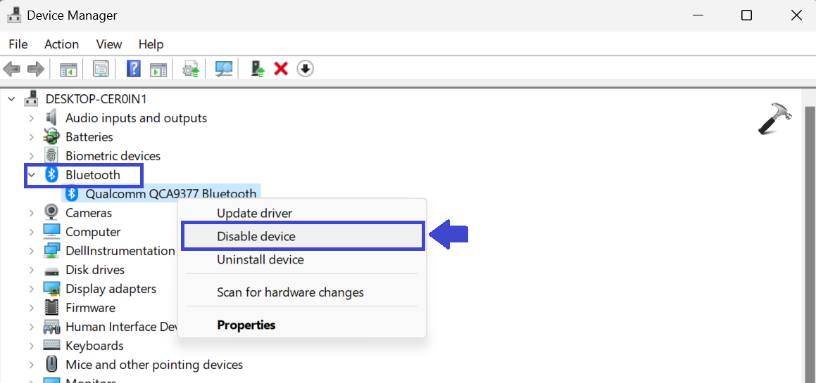 2. 右鍵單擊藍牙驅動程序,然後單擊卸載設備。