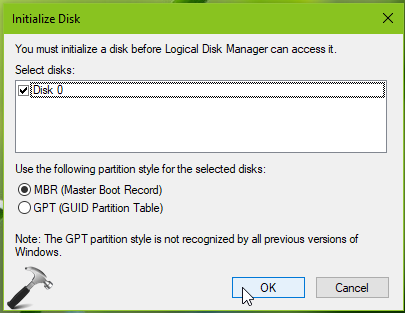 在Windows中,當您添加新硬盤時,必須先對磁盤進行初始化才能使用。初始化過程為新添加的磁盤配置分區樣式,例如主引導記錄 (MBR) 或 GUID 分區表 (GPT)。通常建議使用 MBR 分區,以防您以後需要在以前版本的 Windows 中使用該磁盤。添加新磁盤並啟動磁盤管理管理單元後,系統會自動要求您初始化磁盤。